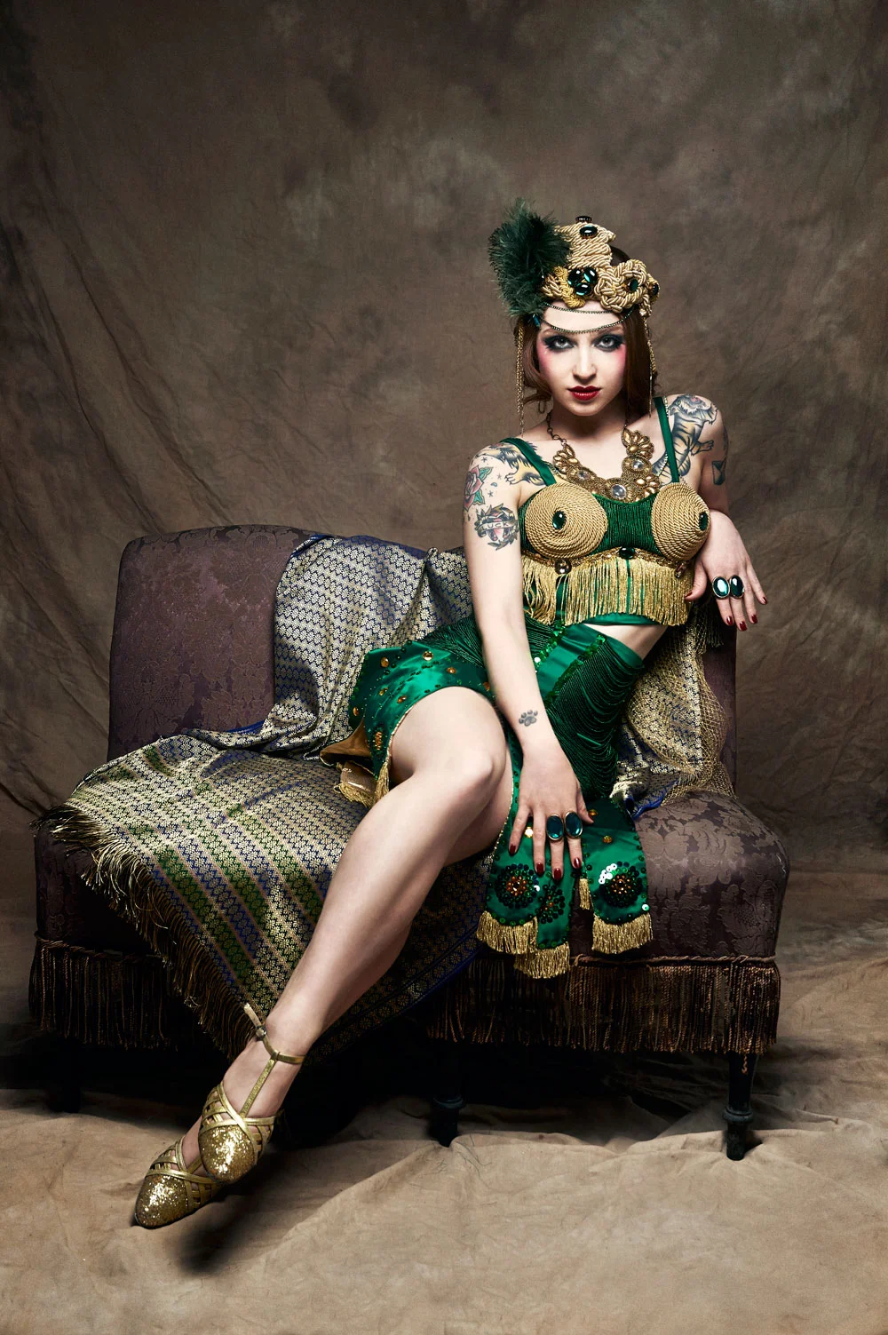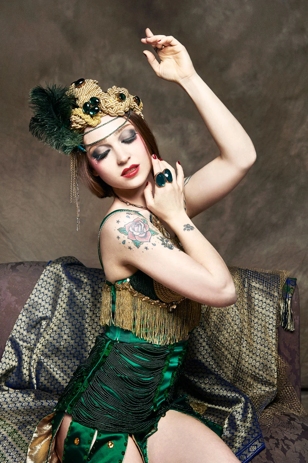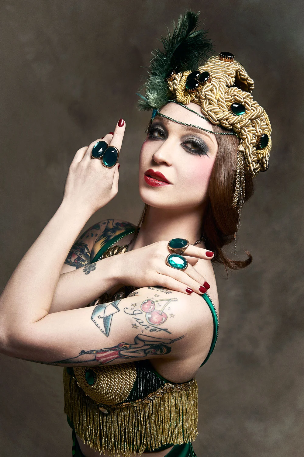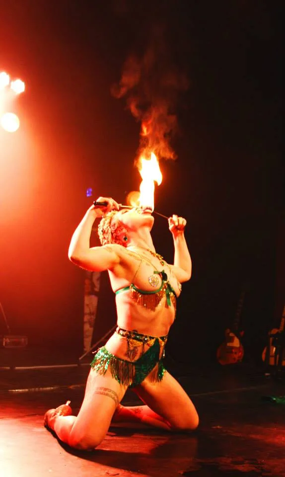 Burlesque meets belly dancing! A mix of oriental vibes and hot exotic jazz, not much to do with classic burlesque, this is a real and original dance number who will truly hypnotize the audience as a charming snake would! *Also available a Fire eating version of this act.